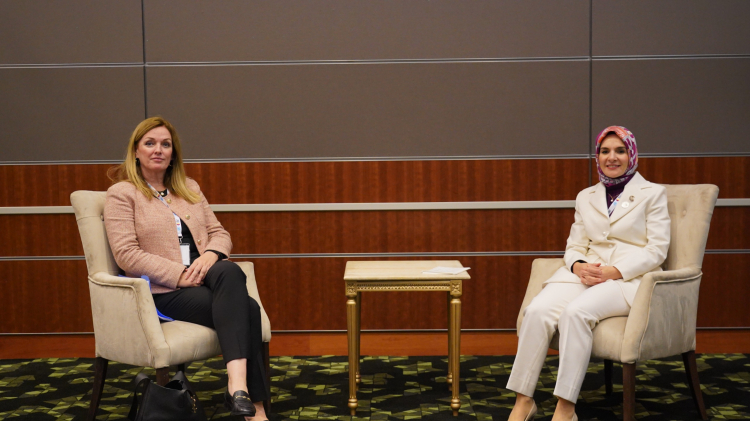 Göktaş, Sierra Leone Sosyal Refah Bakanı Melrose Karminty, İsveç Sosyal Hizmetler Bakanı Camilla Waltersson Grönvall ve Singapur Cumhuriyeti Toplumsal ve Aile Gelişim Bakanı Masagos Zulkifli ile kadın, çocuk, aile ve sosyal politikalar konularında görüş alışverişinde bulundu.