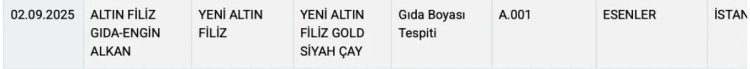 Altın Gıda Filiz Engin firmasına ait “Yeni Altın Filiz Gold Siyah Çay” ürününde yapılan laboratuvar incelemelerinde, çayın doğal siyah çay olarak piyasaya sürülmesine rağmen içine gıda boyası ilave edildiği belirlendi.