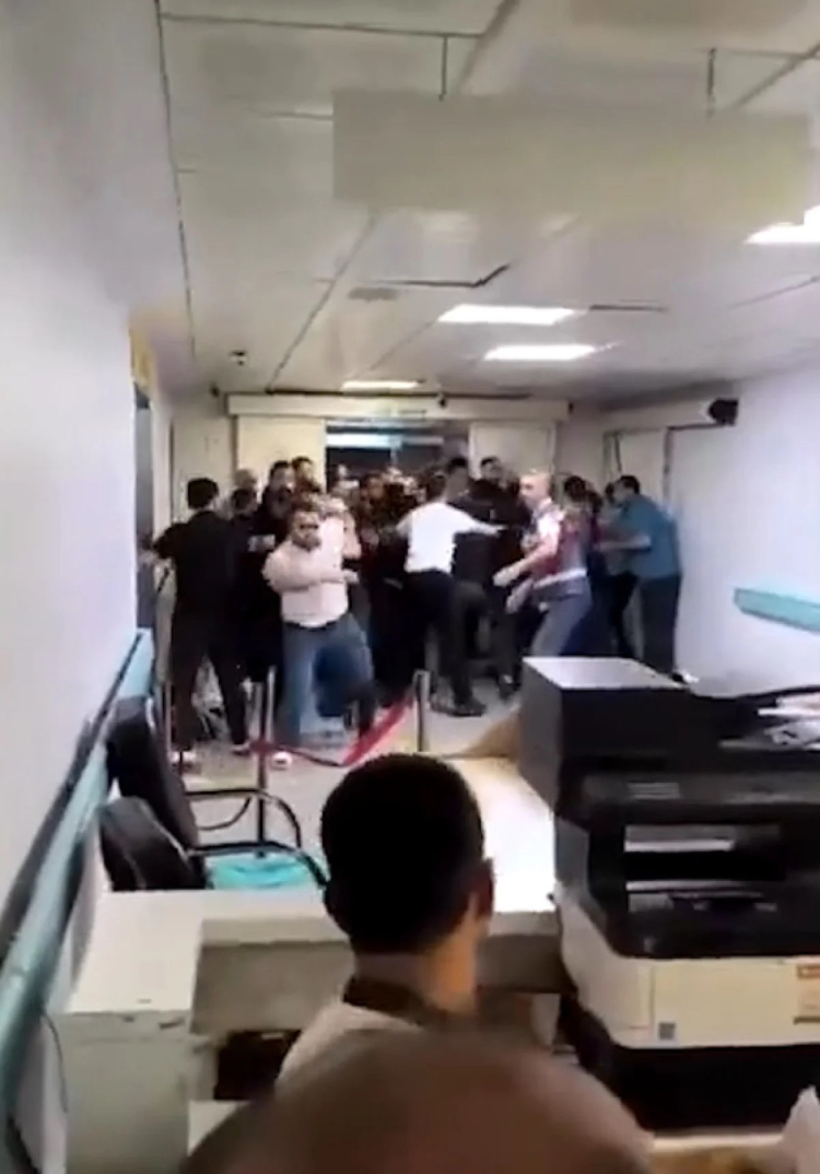 Acil Servis'te yaşanan kavga, güvenlik güçlerinin araya girmesiyle sonlandı. Yaşanan arbede ise cep telefonu kamerasına yansıdı.