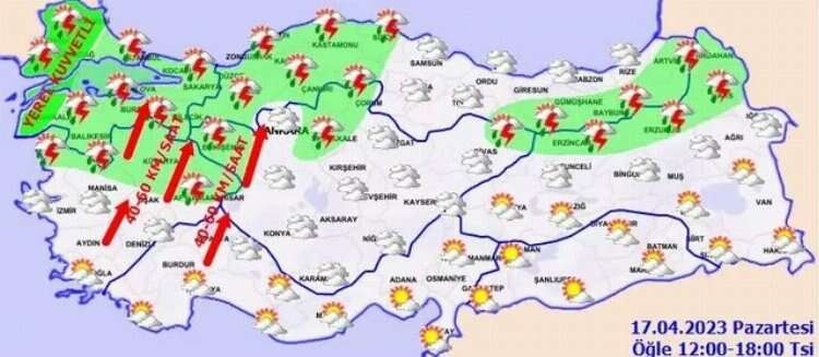 Meteoroloji Genel Müdürlüğü tarafından yapılan son değerlendirmelere göre: Ülkemiz genelinin parçalı ve çok bulutlu, Marmara, Kuzey Ege, İç Anadolu'nun kuzeybatısı, Batı ve Orta Karadeniz, Doğu Karadeniz’in iç kesimleri, Erzincan, Erzurum, Kars ve Ardahan çevreleri ile Sivas'ın doğu ilçelerinin sağanak ve yer yer gök gürültülü sağanak yağışlı geçeceği tahmin ediliyor. Yağışların; öğle saatlerinden sonra Çanakkale, Edirne, Kırklareli ve Tekirdağ çevrelerinde yerel kuvvetli olması bekleniyor.