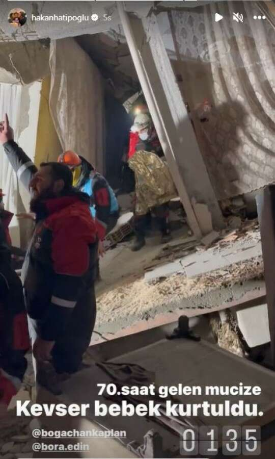 Kevser bebeğin enkazdan çıkartıldığı anlar kameralara yansırken Hatipoğlu, şahit olduğu bu olay karşısında gözyaşlarını tutamadı.