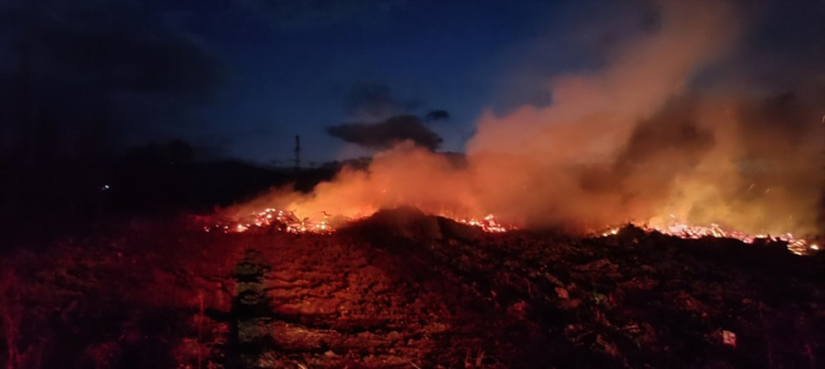Karaçalı mevkisinde O.D'ye ait çiftlik arazisinde, çürümüş ağaç ve köklerin kontrollü olarak yakılması sırasında rüzgarın etkisiyle alevler kısa sürede yayıldı.