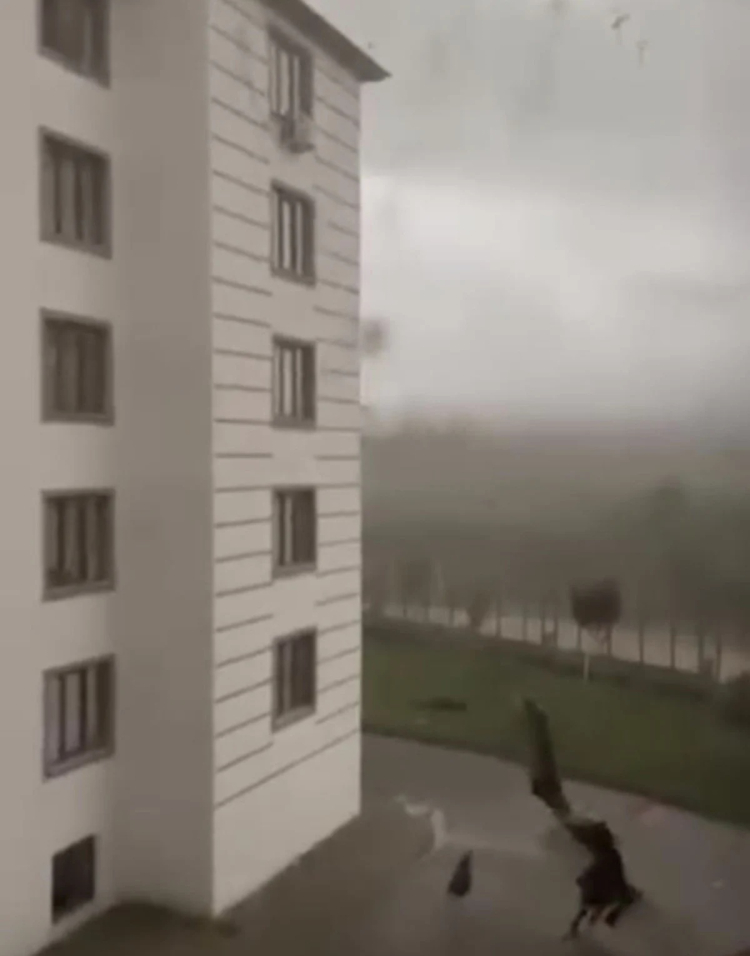 Çatından kopan bir parça ise koşarak eve giden bir çocuğun üzerine düştü.