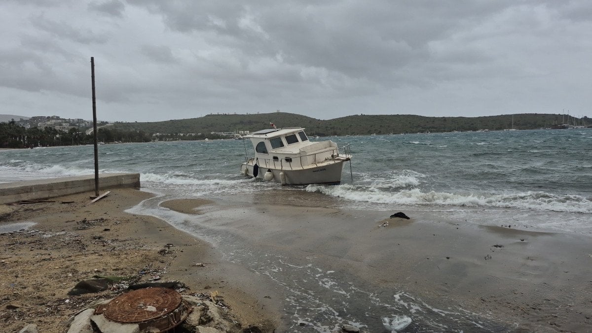 Muğla’nın Bodrum ilçesinde etkili olan fırtına nedeniyle tekneler karaya sürüklendi. Vatandaşlar fırtına nedeniyle zor anlar yaşarken feribot seferleri de iptal edildi.
