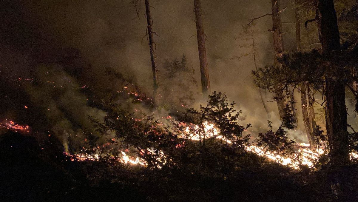 Rüzgarın da etkisi ile kısa sürede yayılan yangını söndürebilmek için ekipler ve köylüler seferber oldu. Saatlerdir süren yangın gece de kontrol altına alınamadı.Yangına havanın kararmasıyla, helikopter müdahalesi edilemezken, yangını söndürmek için ekipler karadan müdahalesini sürdürmeye devam ediyor.Orman bölgesinin dik arazilerde olması sebebiyle alevlere ulaşamayan ekipler için, kepçe ve dozer yardımıyla yollar açılıyor. Gecenin karanlığını ise alevler aydınlattı.