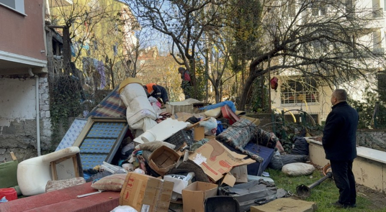 Temizlik çalışmaları kapsamında ev ve bahçeden yaklaşık 10 kamyon çöp çıkarıldı. Bölgedeki görüntüler dron ile kaydedildi.