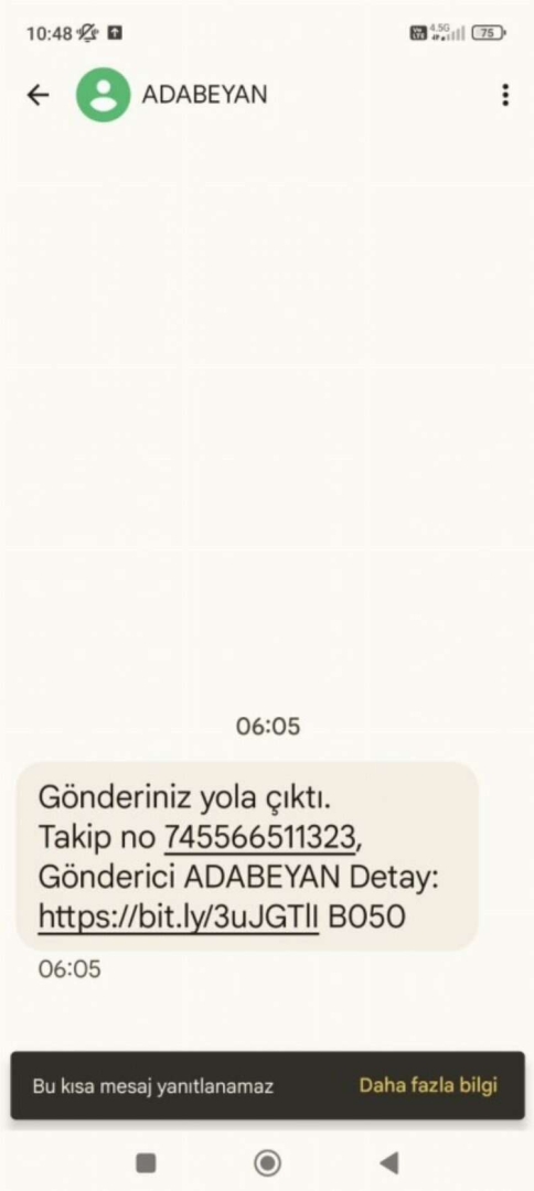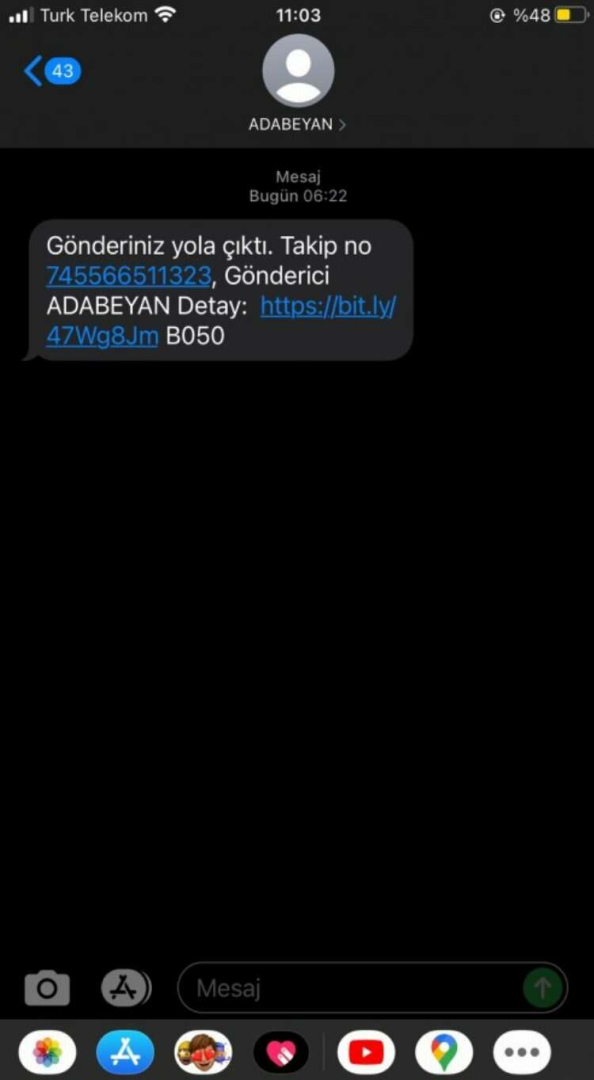 Sabah saatlerinde birçok kişinin telefonuna gelen "ADABEYAN" adlı kişiden gelen mesaj, dikkat çekici bir dolandırıcılık girişimine işaret etti.