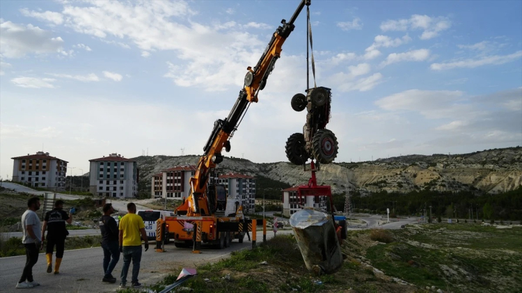 AFAD ekiplerince traktörün altından çıkarılan Yavuz, sağlık ekiplerine teslim edildi.