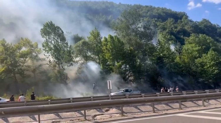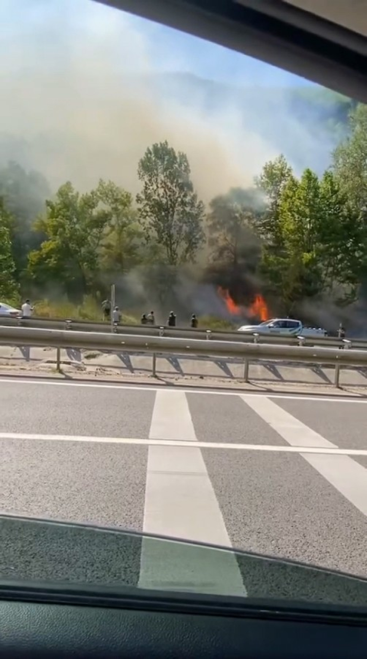 Yangın, saat 15.30 sıralarında Bursa-Ankara kara yolu üzeri Mezit Boğazı mevkiindeki ormanlık bölgede başladı.
