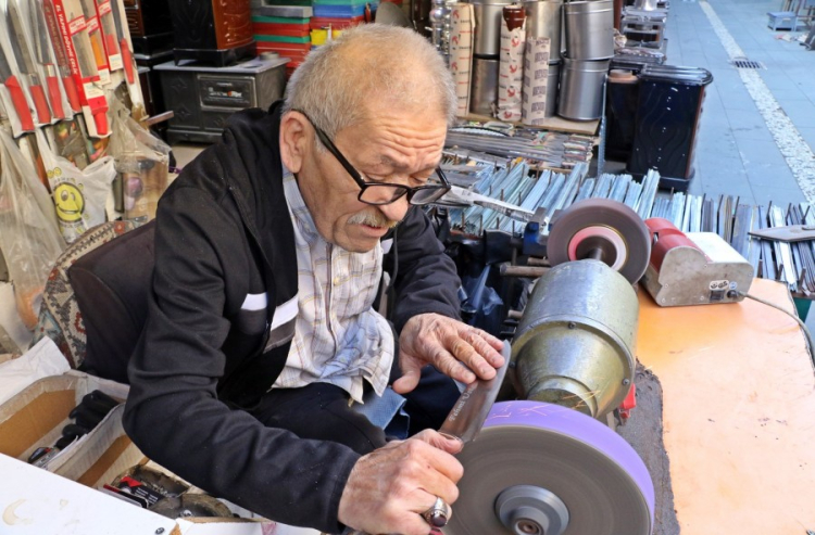 Muratpaşa ilçesi Demirciler Çarşısı'nda bıçak bileme ve satış işini yapan Mehmet Şakar (65), mesleğini 7'nci kuşak olarak ailesinden devralarak sürdürüyor. 15 yaşında babasının yanında mesleğe adım atan Mehmet Şakar, 50 yıldır sabahın erken saatlerinde açtığı iş yerinde bıçak bileme ve satış işi yapıyor. Şakar, ailesinde dededen oğula aktarılan mesleğin kendisinden sonra da oğlu tarafından devam ettirildiğini de söyledi.