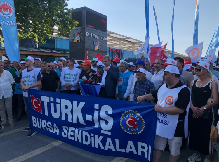 Kamu işçilerinin toplu iş sözleşmesi sürecinde karşılanmayan talepleri Bursa'da meydanlara taşındı. Türkiye İşçi Sendikaları Konfederasyonu (TÜRK-İŞ), ülke genelinde başlattığı eş zamanlı eylemler kapsamında Bursa Kent Meydanı'nda birlik olarak bir basın açıklaması gerçekleştirdi.