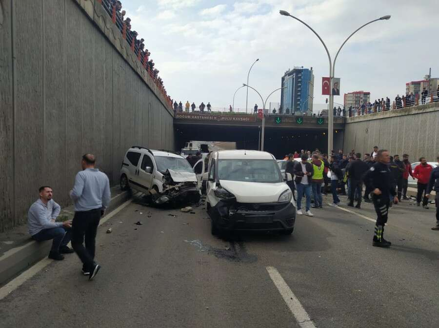 Alınan bilgilere göre, Diyarbakır Kadın Hastalıkları Doğum ve Çocuk Hastalıkları Hastanesi mevkisindeki köprülü kavşakta, 16 AIG 669 plakalı araç, Şanlıurfa yolu üzerinden otogar istikametine sağ şeritten seyir halindeyken sola doğru manevra yaptığı sırada aynı istikamette orta şeritte seyir halinde olan sürücü M.A. idaresindeki 44 ACB 185 plakalı araca çarptı. Çarpmanın etkisiyle hareketini sürdürerek sol şeritten aynı istikamete seyir halinde olan sürücü, M.K. idaresindeki 06 DG 2142 plakalı araca çarptı.