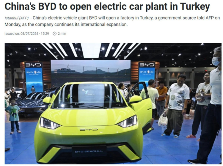 Fransa'nın önde gelen haber kuruluşlarından France24, Çin'in elektrikli araç devi BYD'nin Türkiye'yi seçtiğini söyledi.