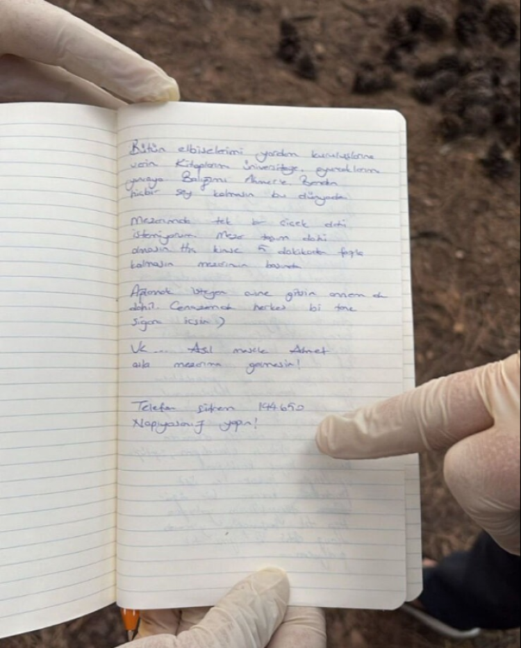 Öte yandan Düzgün'ün, kurs hocasına bir mektup bırakarak intihar edeceğini belirttiği ve konum bilgisi paylaşarak "Cenazemi alın" mesajı gönderdiği, ölüm anını kayda aldığı iddia edilirken, Instagram hesabında intihardan bir gün önce, notlar kısmına "26.05 2025, Sağlıksız bir birey. Bir ölünün hatıra defteri" yazdığı bildirildi.