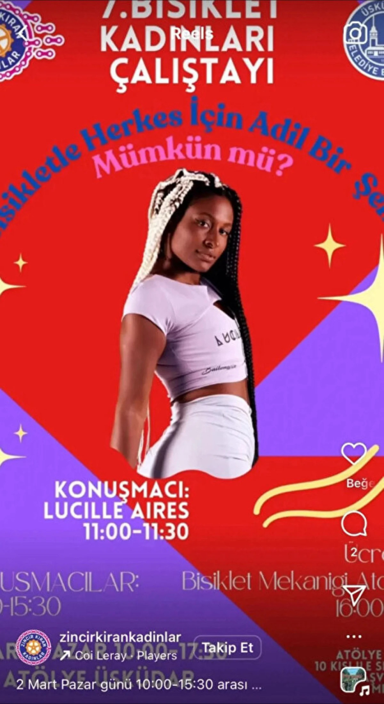 'Zincir kıran kadınlar çatısı' altında çeşitli faaliyetlere imza atan Üsküdar Belediyesi'nin iş birliğiyle gerçekleştirilen eğitim belediye binasındaki atölye salonunda yapılmış, etkinliğe Afrikalı twerk eğitmeni Lucille Aires konuşmacı olarak katılmıştı..