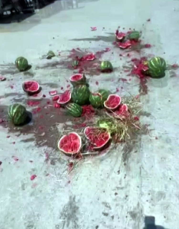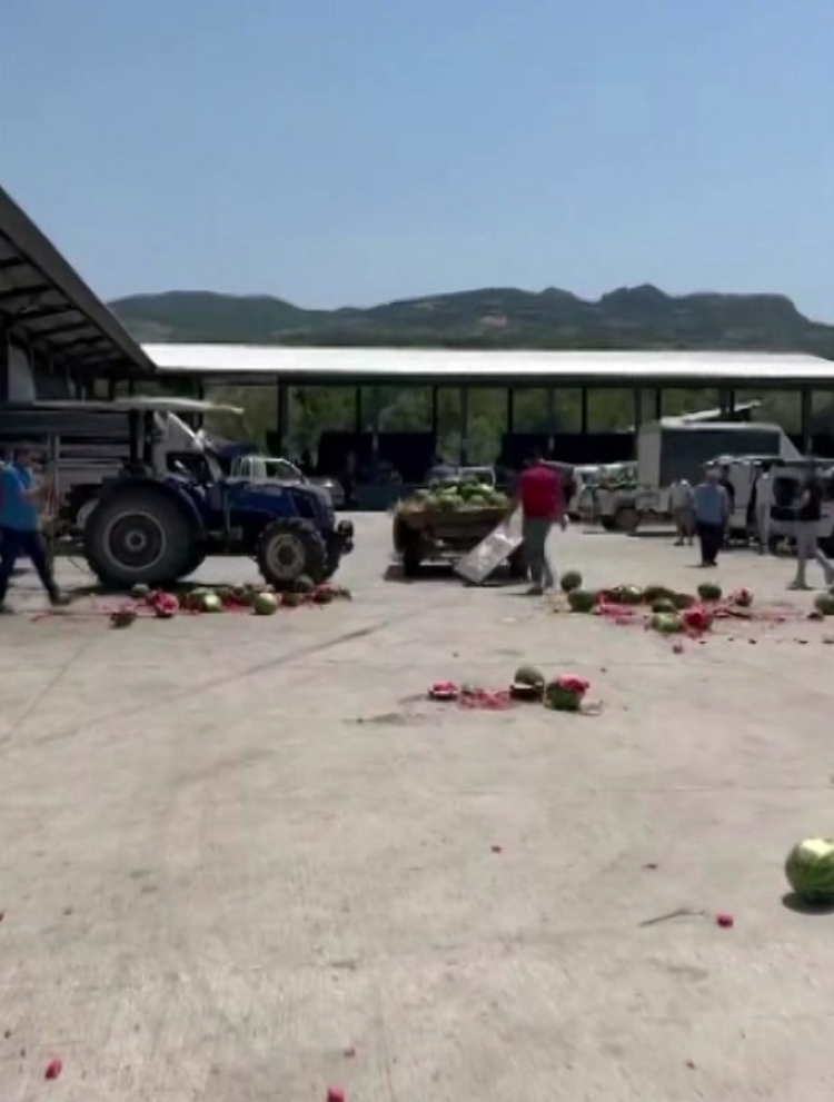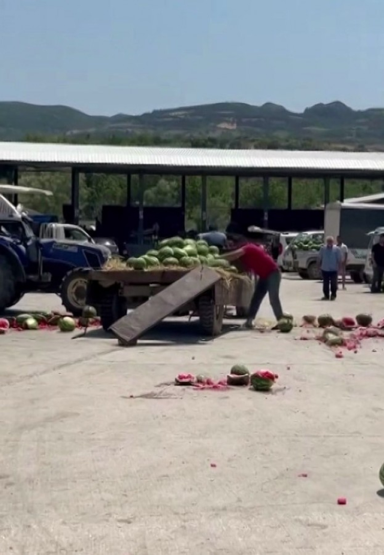 Sakarya'nın Geyve ilçesinde bir çiftçi, mahsulünün para etmemesine tepki göstererek, bir römork dolusu karpuzu yere fırlattı. O anlar cep telefonu kamerası ile saniye saniye kaydedildi.