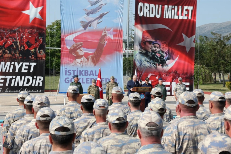 Bu topraklardaki varlığımız için bedel ödeyen gazilerimize de şükranlarımı sunuyor, aileleriyle birlikte her birine hayırlı bayramlar diliyorum. Sizler, Hava Kuvvetlerimizin Er Eğitim Tugay Komutanlığı olarak son derece önemli bir misyonu deruhte ediyorsunuz. Sahip olduğunuz bilgi, tecrübe ve askeri disiplinle taşıdığınız ve her yıl 35 bin Mehmetçiğe aşıladığınız birlik bilinciyle, insani değerleri merkeze alan idare ve yönetim anlayışınızla özellikle Gök Vatan'ın muhafaza ve müdafaasında kilit bir rol üstleniyorsunuz. Bunun için her birinize şahsım ve milletim adına teşekkür ediyor, Rabbim başarılarınızı inşallah daim eylesin diyorum.
