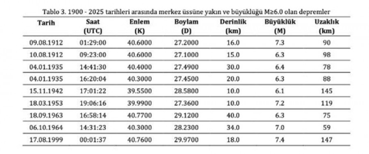 Deprem raporunda, İstanbul'un güneyinde Kuzey Anadolu Fay Zonu'nun tarihsel dönemde şiddetli depremler meydana geldiği belirtildi.
