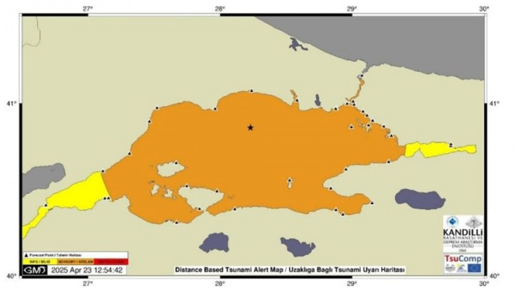 Depremi takiben 6. dakikada tsunami uyarı mesajları AFAD'a ve bölgedeki diğer ülkelere iletildi.