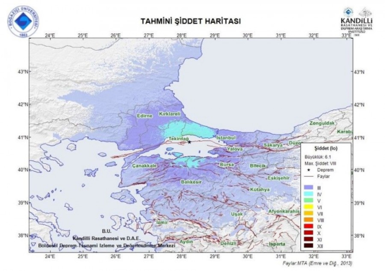 Boğaziçi Üniversitesi Kandilli Rasathanesi ve Deprem Araştırma Enstitüsü (KRDAE), İstanbul'da meydana gelen depremlerle ilgili ön değerlendirme raporu yayınladı. Prof. Dr. Nurcan Meral Özer, Silivri açıklarındaki depremin şiddetinin denizde 8, karada 4-5 olarak ölçüldüğünü söyledi.
