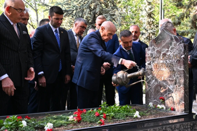 Bahçeli, Kur’an-ı Kerim tilavetinin ardından Türkeş’in kabrine karanfil bıraktı ve bakır ibrikle su döktü.