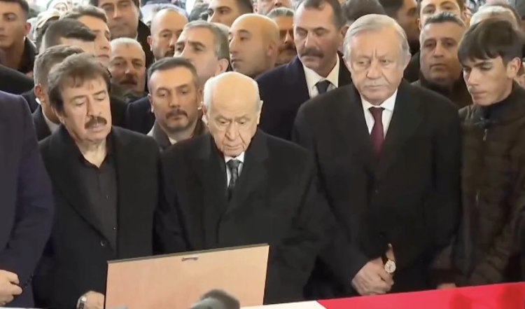 Cenaze törenine katılan Bahçeli, tabutun başında dua etti ve usta sanatçının oğluyla kısa bir konuşma yaparak taziyelerini de iletti. Bahçeli'nin bu anlarda da bir hayli üzgün olduğu görüldü.