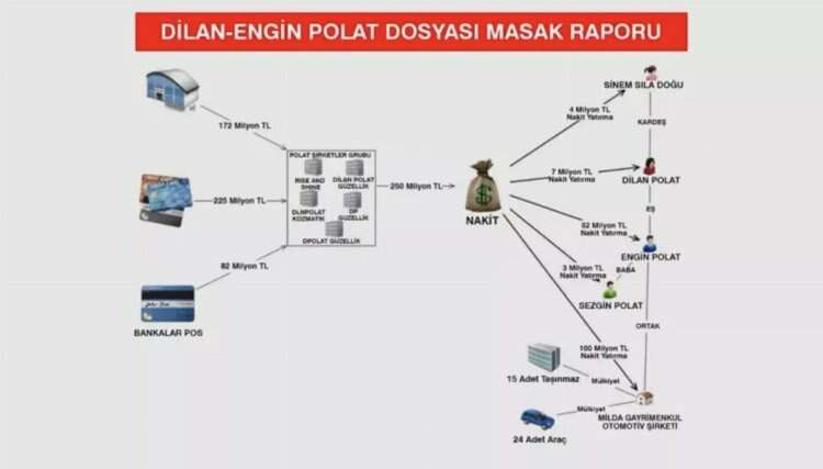 Polat çiftine yönelik yürütülen soruşturmaya ilişkin MASAK tarafından 49 sayfalık rapor hazırlandı. Raporda, şirketlerin aile üyelerinin üzerine kurulduğu, şirkete gelen para miktarının tam 500 milyon TL olduğu tespitine yer verildi. İşte detaylar...