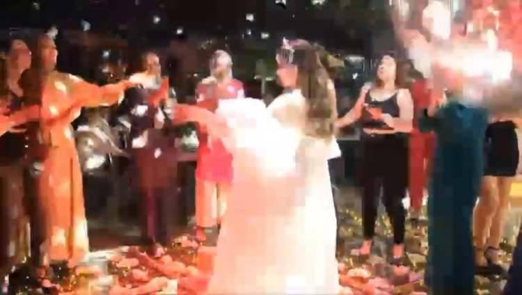 Görüntülerde, gelinin dans ettiği anda disko topunun gelinin üstüne düştüğü görülüyor.