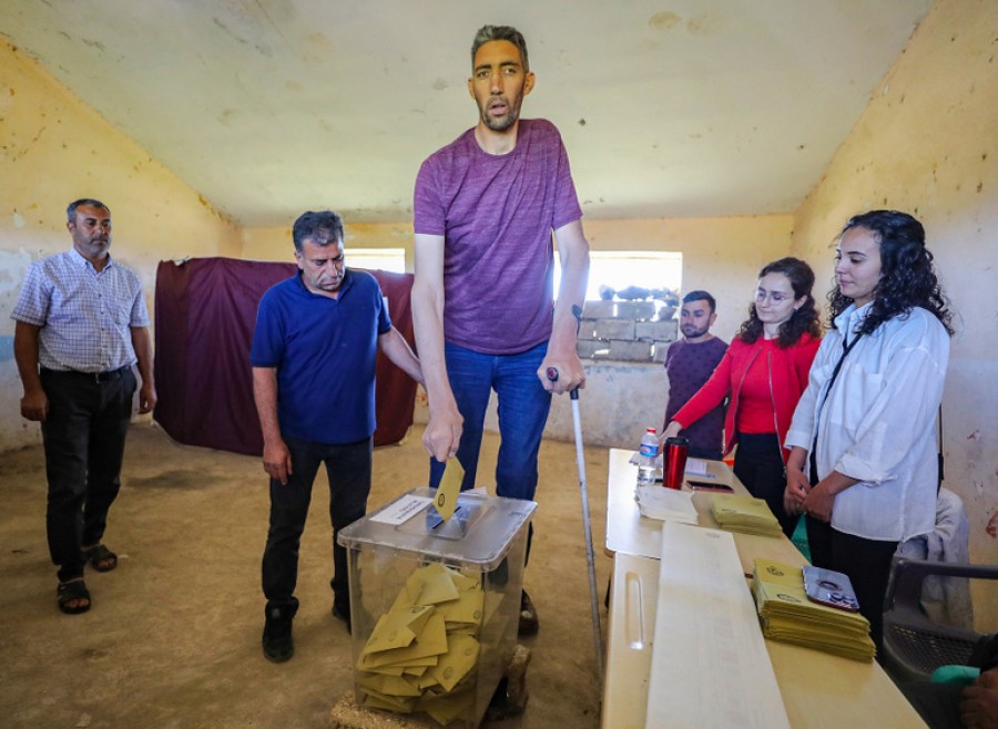 Mardin'de yaşayan 2 metre 51 santimetre boyuyla "dünyanın en uzun boylu adamı" unvanına sahip Sultan Kösen, Cumhurbaşkanı ve 28. Dönem Milletvekili Genel Seçimleri için Mardin'in Derik ilçesinin kırsal Alibey mahallesinde oy kullandı.