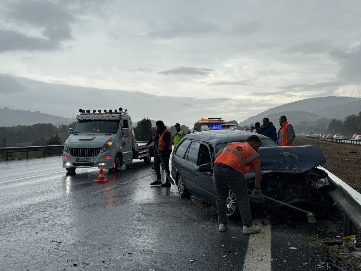 Düzce'de Anadolu Otoyolu'nun Gümüşova ilçesi Yongalık köyü mevkiinde H.İ.T. yönetimindeki otomobil, aynı yöne seyreden Z.Ö. idaresindeki otomobile arkadan çarptı.Bu sırada başka bir otomobil daha kazaya karıştı.