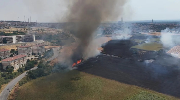 Edirne’de yerleşim alanlarına yaklaşan anız yangını, gökyüzünü karartıp paniğe yol açtı; ağaçlar yanarken, olası bir facia son anda önlendi.