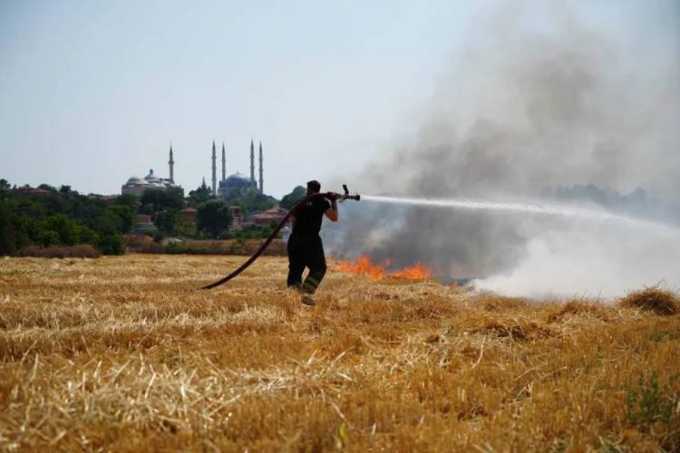 Edirne'de anız yangını: Yerleşim alanlarına gelmeden söndürüldü