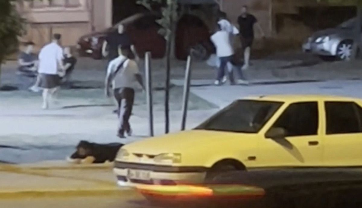 Yumrukların ve tekmelerin havada uçuştuğu o anlar, saniye saniye kaydedildi.Görüntülerde, yere düşen bir kişinin başka bir grup tarafından yumruklanıp tekmelendiği, ardından da kavganın büyüdüğü ve ortalığın bir anda karıştığı görülüyor.