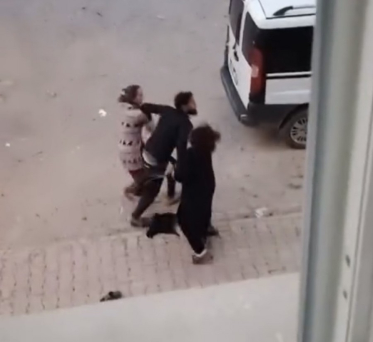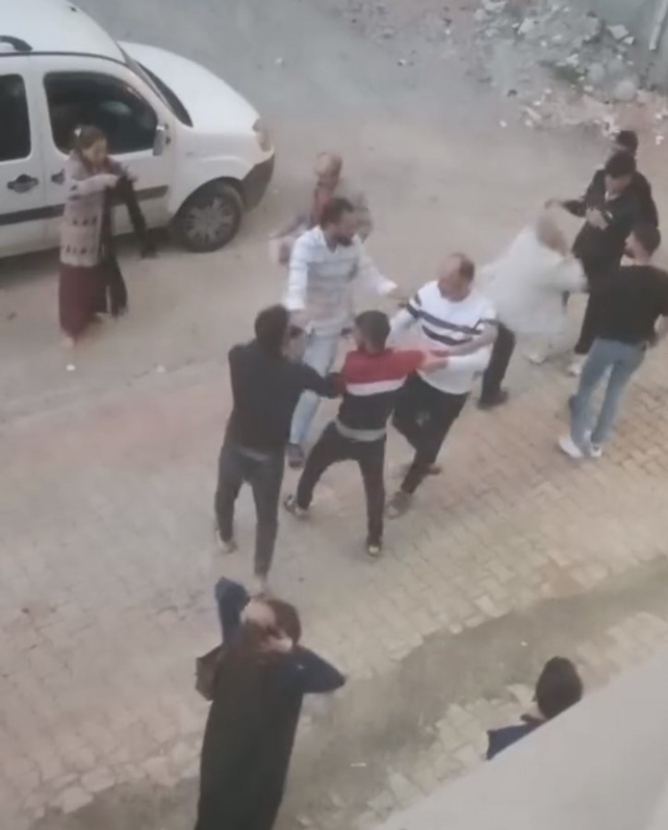 Elazığ'da bir köşede kadınlar saç baş birbirine girerken diğer köşede ise erkekler kavgaya tutuştu. O anlar bir vatandaşın cep telefonu kamerasına yansıdı.