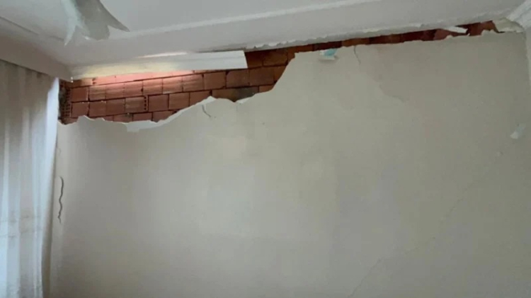 Yine ekskavatörün darbesi ile yaşlı çiftinin bahçe duvarı da hasar alırken, yıkılma ihtimali bulunan bahçedeki duvarın geriye kalan kısımları korkuttu.