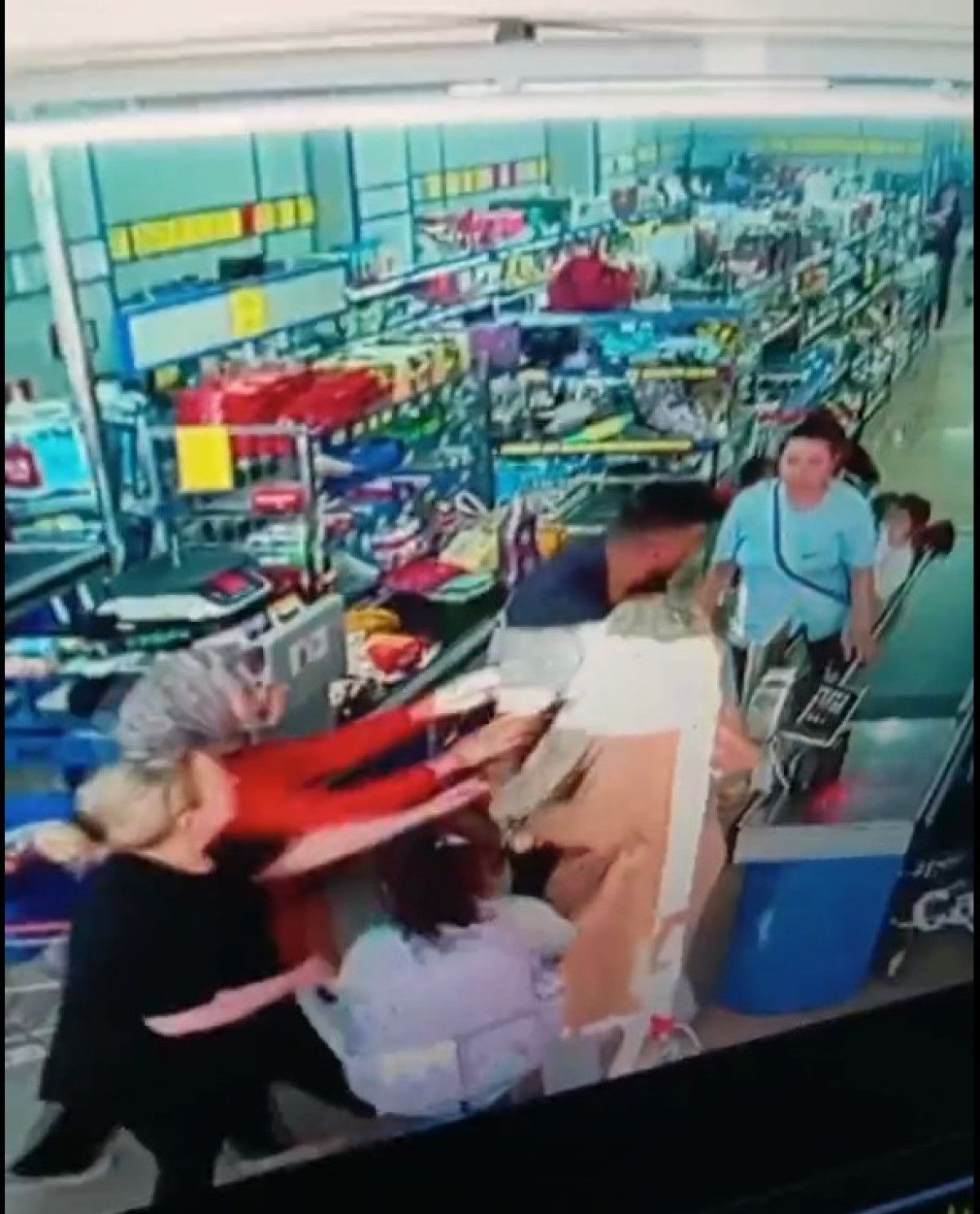 Bir markette 2 kadının kasa sırası tartışmasıyla başlayan kavgada, kadınlardan birinin eşi olan S.T., 2 kadın ve bir erkek müşteriyi darbederken, o anlar güvenlik kamerasına yansıdı.