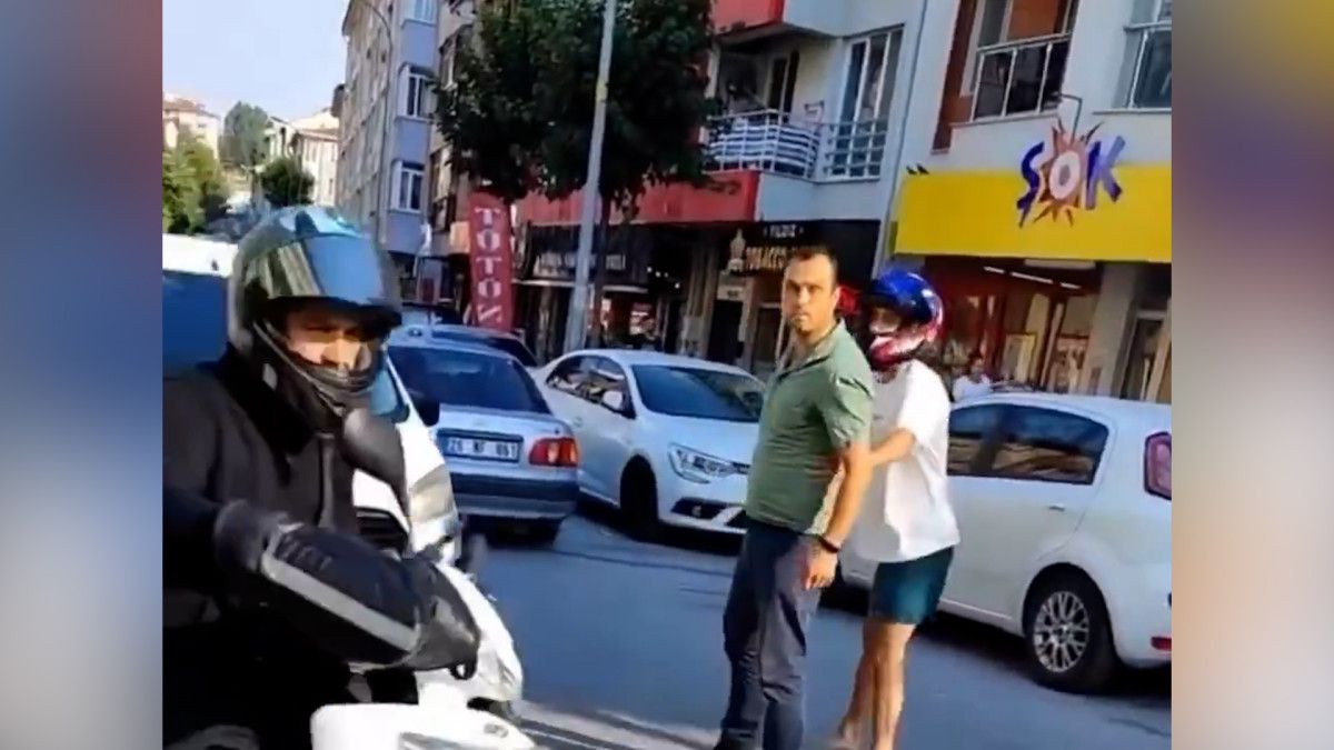 Sürücü, ardından kucağında bebeği olan babanın üzerine yürüyerek, "Hayırdır. Sen niye oradan artistlik yapıyorsun" dedi. Yoldan geçen başka bir vatandaş tarafından o anlar anbean kayda alındı.