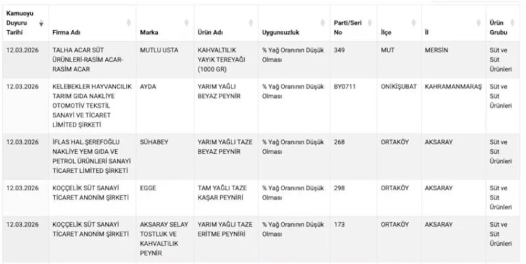 Yoğurt ve özellikle kaymaklı yoğurtlarda nişasta gibi istenmeyen katkı maddeleri tespit edildi. Ayrıca bazı süt ürünleri ve peynirlerde yağ oranının etiket beyanından daha düşük olduğu belirlenerek tağşiş kapsamında değerlendirildi.