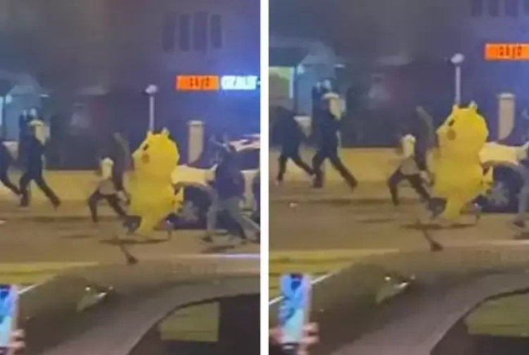Eylemci Pikachu polisten kaçarken görüntülendi