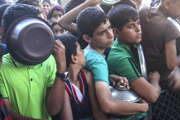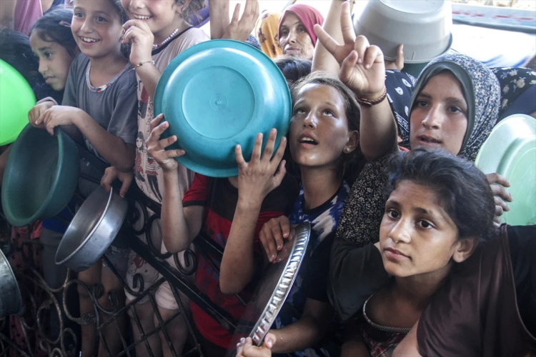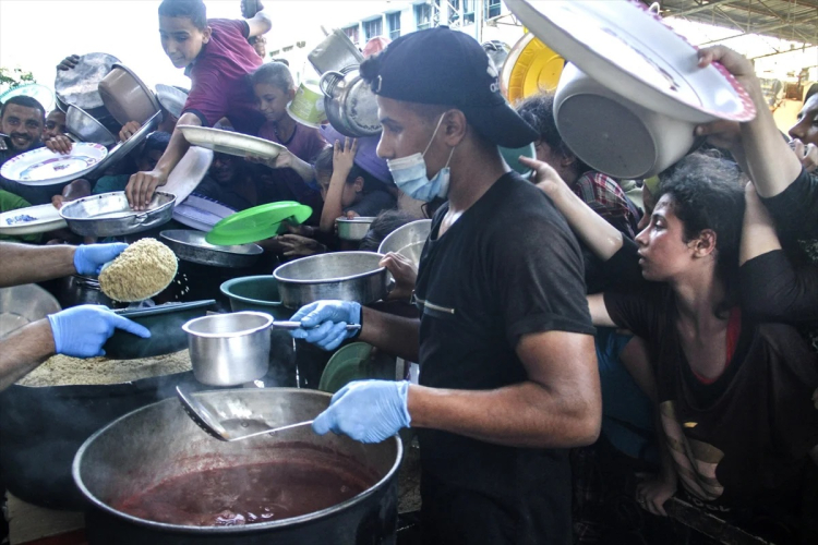 İsrail'in Gazze'ye yönelik saldırıları nedeniyle yerinden edilen Filistinlilerin yemek dağıtımı sırasında çekilen kareleri, yaşanan dramı bir kez daha gözler önüne serdi.