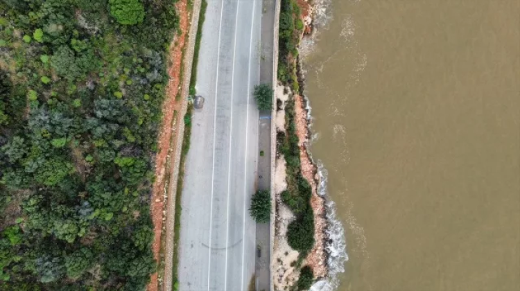 Öte yandan mavinin kahverengiyle karıştığı deniz dronla görüntülendi.