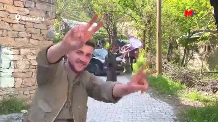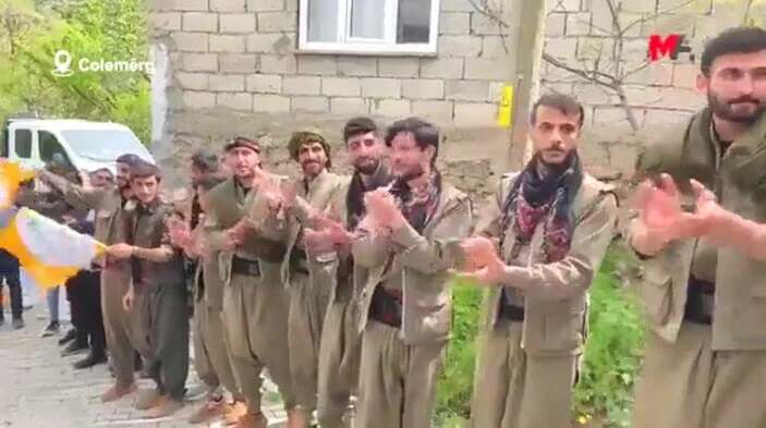Hakkari'de seçim çalışması yürüten HDP'li milletvekili adayları, gittikleri bir köyde PKK'lı teröristler tarafından karşılandı. O anlar böyle görüntülendi.