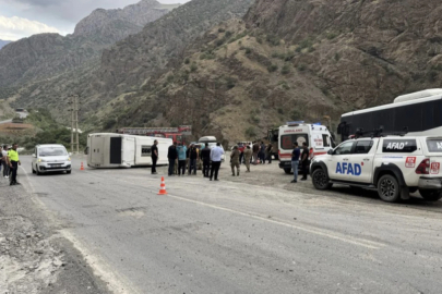Hakkari'de askeri personel taşıyan ve sürücüsü öğrenilemeyen midibüs, Hakkari-Çukurca kara yolunun 10. kilometresinde kontrolden çıkarak devrildi.