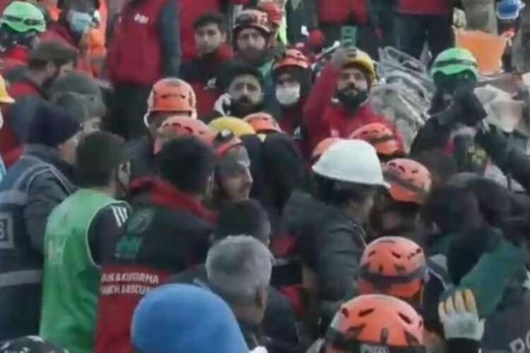Kılınç çifti enkazdan çıkarılıp sedye ile ambulansa götürülürken çevredekilere el salladı. Çift, daha sonra ambulanslarla hastaneye götürüldü.