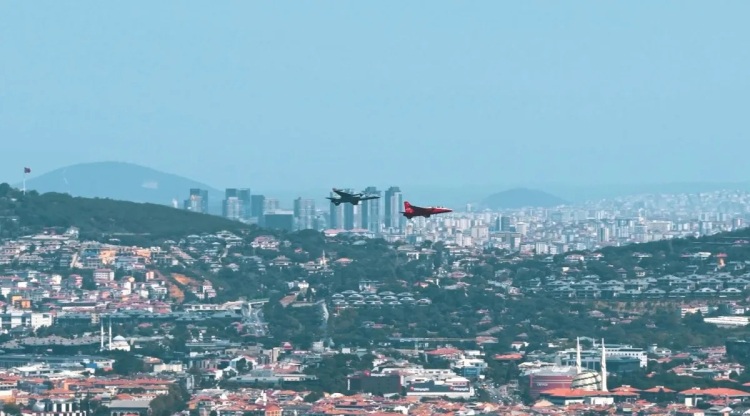 TUSAŞ'ın, sosyal medya hesabından yapılan paylaşımda HÜRKUŞ ve HÜRJET'in İstanbul semalarında uçmasına ilişkin görüntüler, Zeki Müren'in 'Sevemez kimse seni' şarkısıyla birlikte paylaşıldı.