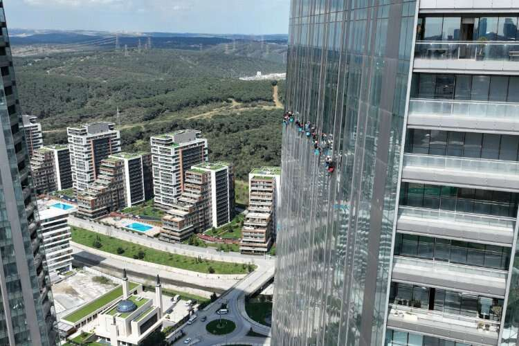 Bahar aylarında gökdelenlerin dış cephelerinde görülen endüstriyel dağcılar yüzlerce metre yükseklikte adeta komanda gibi donanımlı teçhizatlar ile birlikte çalışıyor. 284 metre yükseklikte iple sarkarak çalışan dağcıların zorlu mesaisi havadan görüntülere yansıdı. Kendilerini iple erişim teknisyeni olarak tanımlayan işçiler de bazıları mesleğe ilk başladıklarında korktuklarını ancak daha sonra alıştıklarını ifade etti.