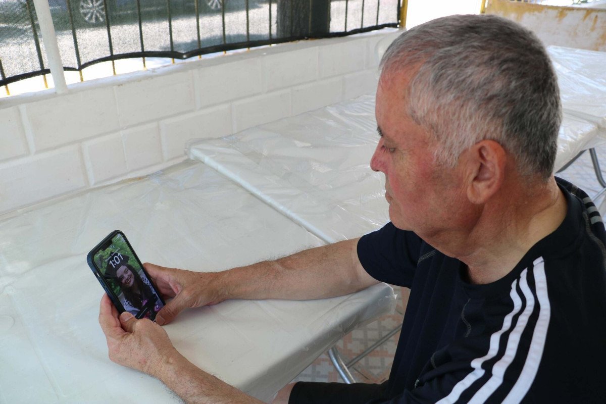 Mehmut Suat Eygi, ABD'de yaşayan damadı Pakistan asıllı Hamid Mazhar Ali ile kızı Ayşenur Ezgi Eygi'nin Filistin'e destek için yolculuğa çıkmadan önce havalimanında kendisiyle birlikte çektirdikleri son fotoğrafa bakarak duygusal anlar yaşadı.
