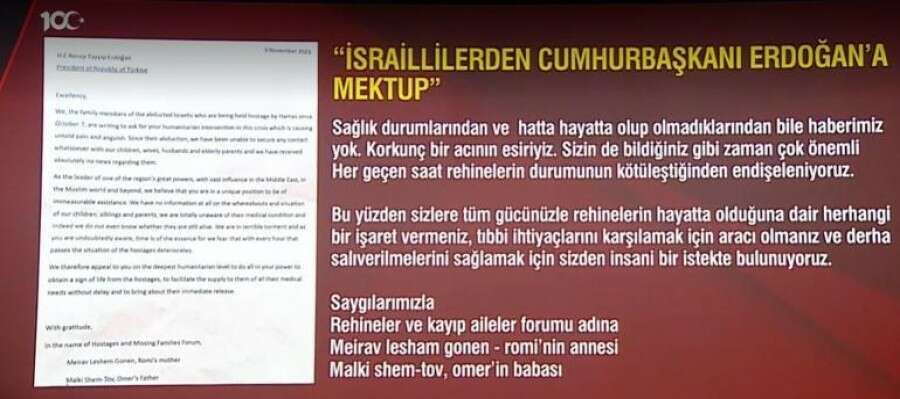 İsrailli rehinelerin aileleri Cumhurbaşkanı Erdoğan'a mektup yazdı. CNN TÜRK Özel Haberler Şefi Fulya Öztürk, mektuba ulaştı.