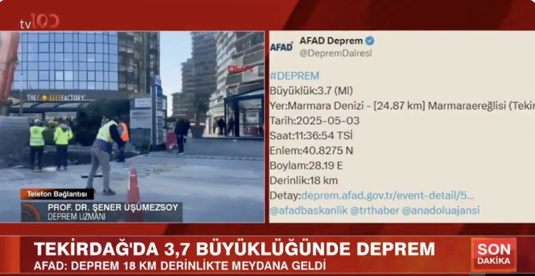 Hissedilen depremin ardından tv100 ekranlarına bir değerlendirmede bulunan Prof. Dr. Şener Üşümezsoy, şöyle dedi: