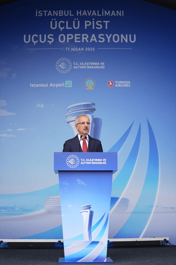 Ulaştırma ve Altyapı Bakanı Abdulkadir Uraloğlu, İstanbul Havalimanı'nda eş zamanlı üçlü bağımsız pist operasyonlarının başlatıldığını duyurdu. Havalimanında gerçekleşen törenin ardından üç uçak aynı anda pistten kalkış gerçekleştirdi.